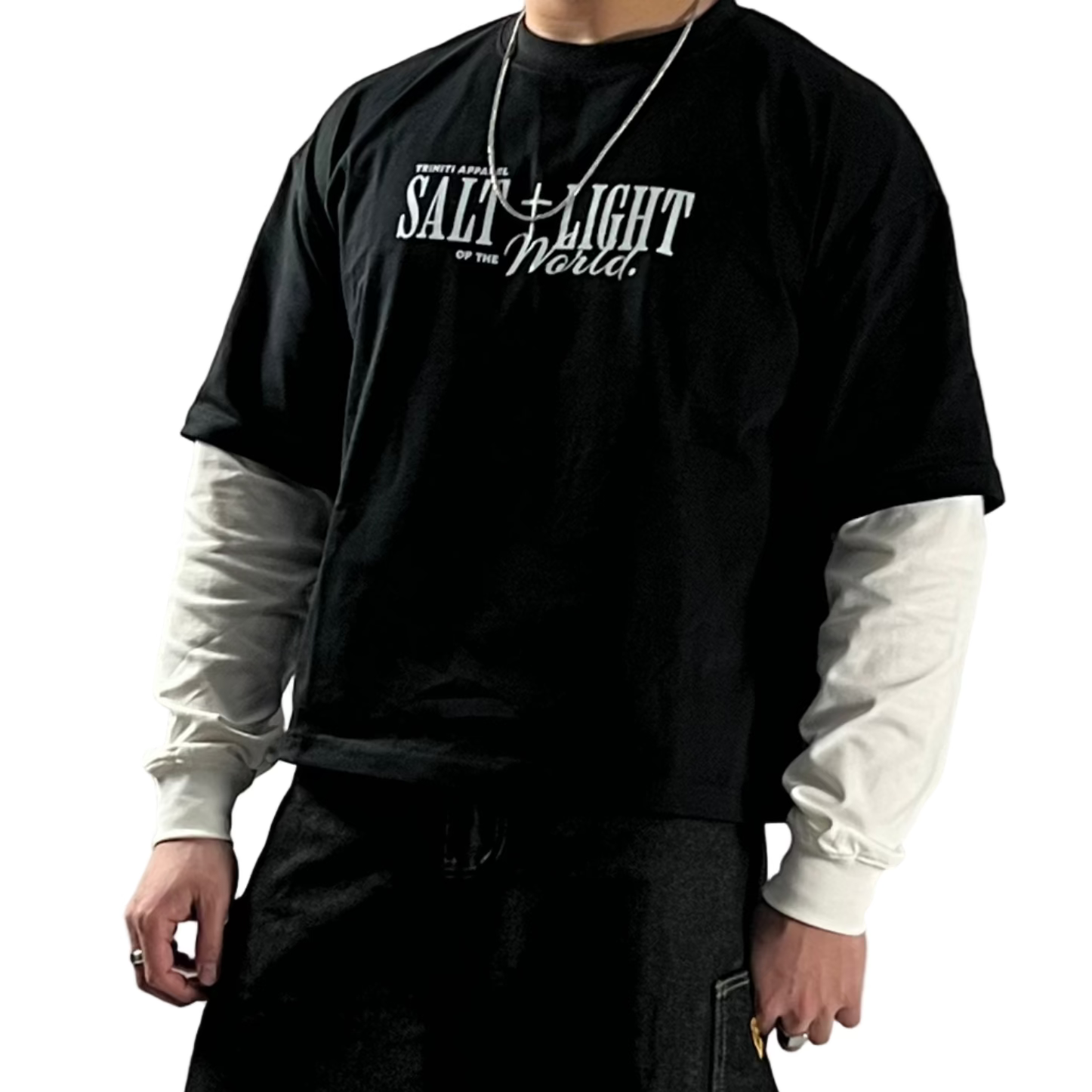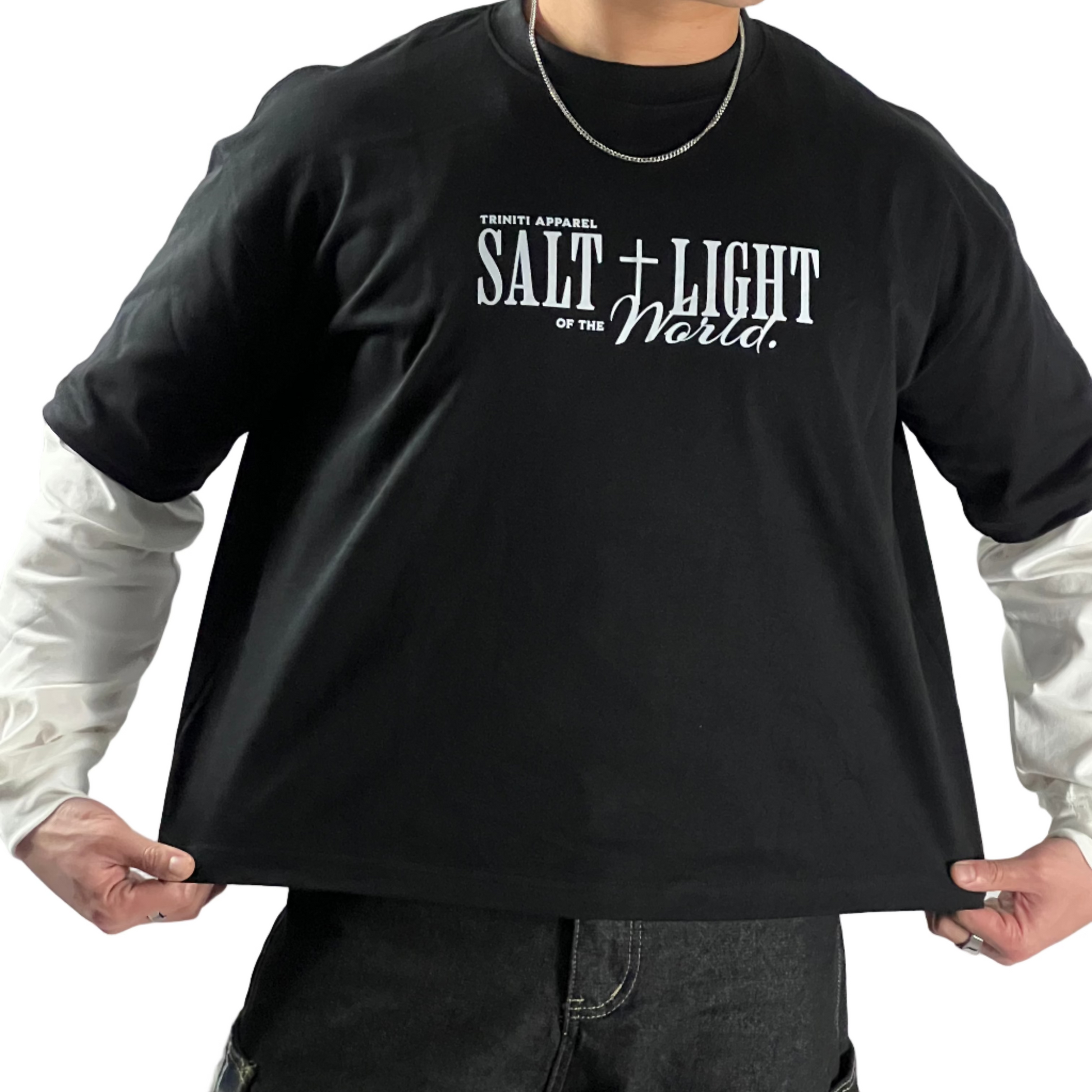 Stand bold in faith and style with the Salt + Light of the World Layered Tee by Triniti Apparel. This statement piece is inspired by Matthew 5:13–14 — a reminder to shine your light wherever you go.