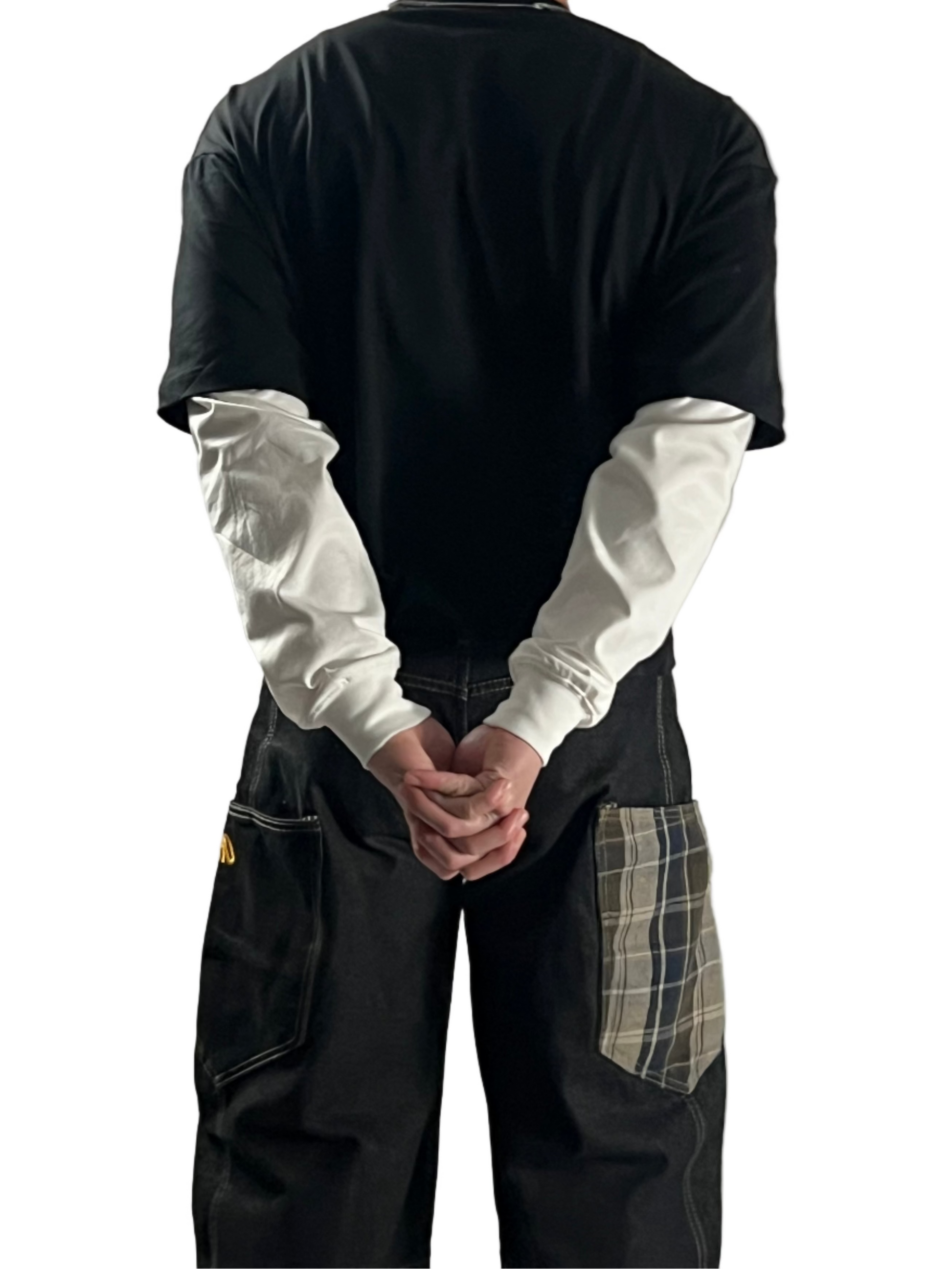 Featuring a black oversized tee layered over white long sleeves, it offers a streetwear-inspired look with a powerful message. The front print combines bold and script typography, creating a timeless design that speaks truth and confidence.